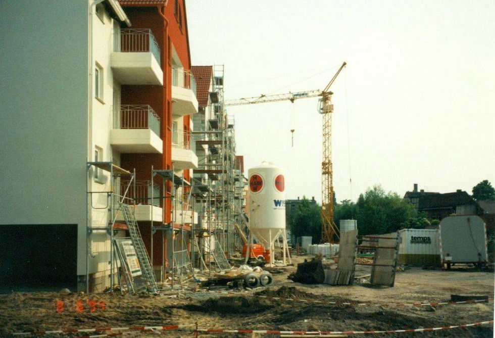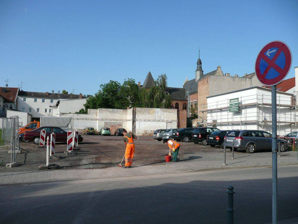 Verschwunden sind die Häuser in der Steinstraße 2 und 3. Hier parken zurzeit die Autos hinter dem Geschäft 'Kilz', gegenüber der Post.