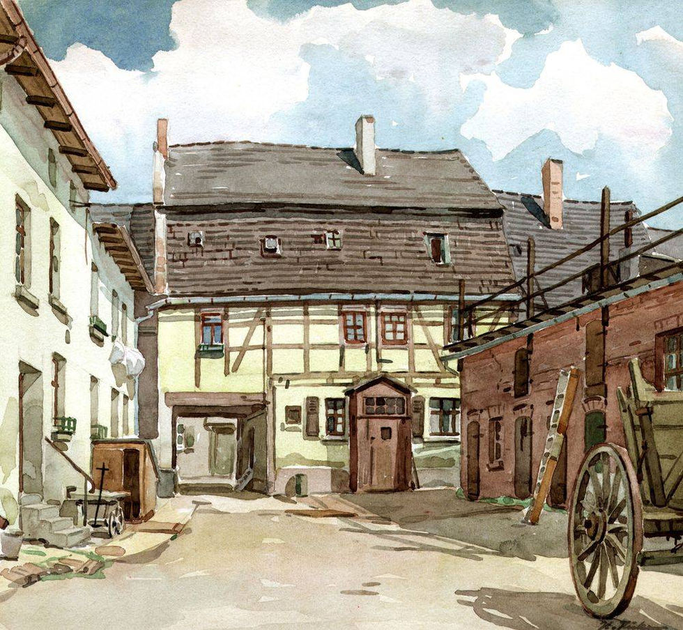 Wir beenden diese Serie mit Aquarellen des Schönebecker Malers Heinrich Huke sen. und bedanken uns ganz herzlich bei Heinrich Huke jun., dass wir die Zeichnungen für unsere Homepage verwenden dürfen. Diese Zeichnungen sind besonders wertvoll, denn es gibt die meisten Gebäude nicht mehr. Wir verwenden bei der Präsentation die Bildunterschriften des Malers.